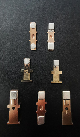 公司立足于環保型電接觸材料的研究,自主開發了擁有自主知識產權的“銀-錫銦復合氧化物電工觸點材料及其制備工藝”,采用化學包覆法,成功在"銀氧化錫"材料中添加特殊材料,增強了材料的特殊性能,拓寬了材料的應用領域。以 “銀氧化錫銦觸點材料”為核心技術,不斷開發出了“電接觸線材、復合帶材、電接觸元件和組件”等一系列多類型產品;核心技術均獲得發明專利授權。